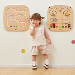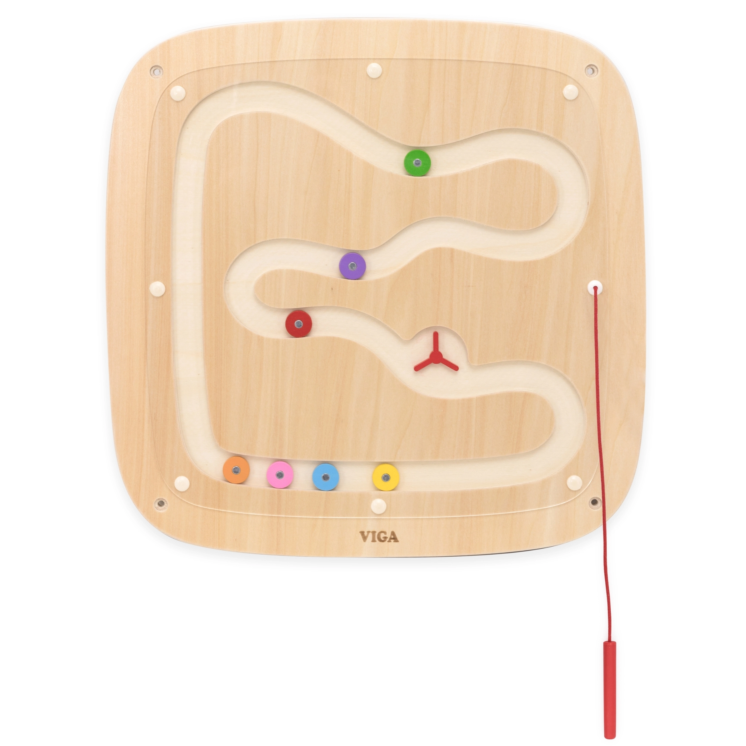 Odkryj magię grawitacji z tą interaktywną drewnianą tablicą VIGA! Za pomocą przymocowanego magnetycznego długopisu dzieci przesuwają kolorowe krążki po dwóch różnych torach i obserwują, jak zmienia się prędkość i kierunek. Tablica jest wytrzymała, bezpieczna i montowana na ścianie, dzięki czemu oszczędza miejsce, a jednocześnie rozwija małą motorykę, koordynację ręka–oko oraz myślenie logiczne.