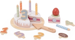 Zestaw wykonany jest z wysokiej jakości drewna o gładkiej powierzchni i z bezpiecznymi farbami. Pastelowe odcienie zachęcają do zabawy, a cyferki i świeczki naturalnie rozwijają liczenie, koordynację ręka–oko oraz małą motorykę. Świetny dodatek do dziecięcej kuchni i na „dziecięce” przyjęcie urodzinowe.