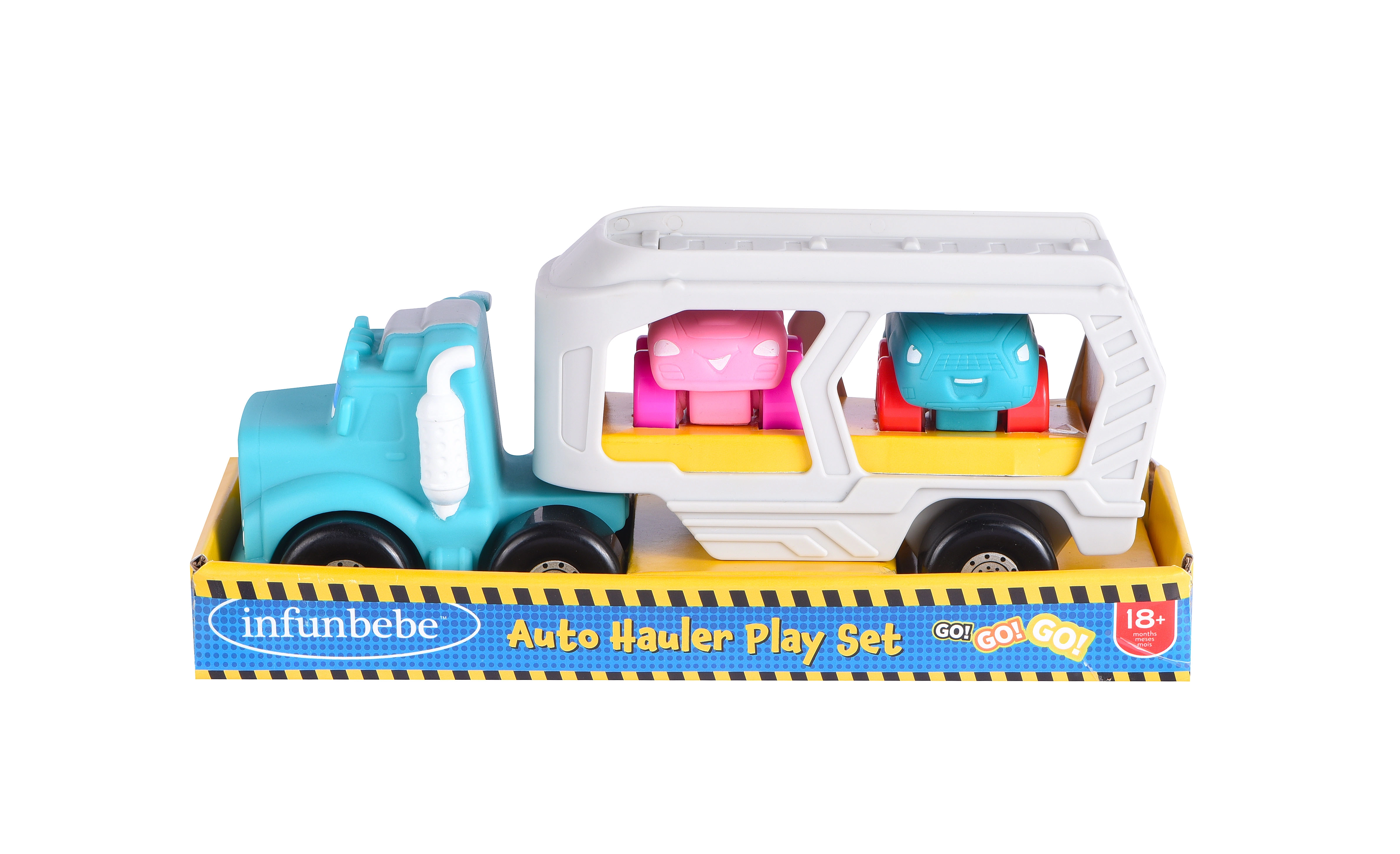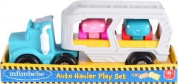 W zestawie znajdują się ciągnik oraz dwa samochody osobowe, które można łatwo załadować i rozładować. Lekka i wytrzymała konstrukcja nadaje się do codziennego użytkowania i łatwego przenoszenia.