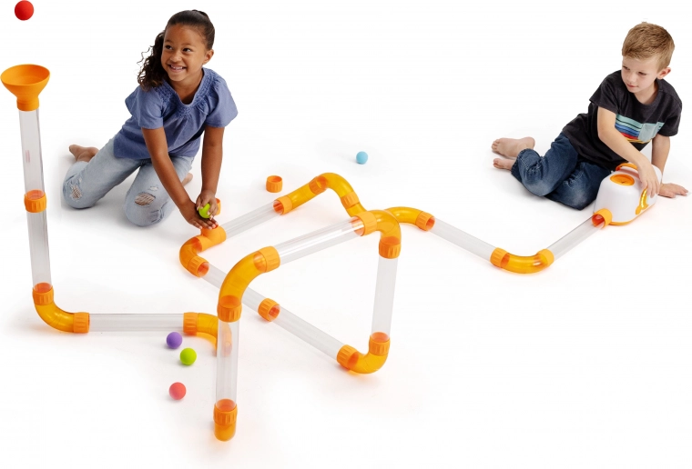 Fat Brain Air Toobz to interaktywny tor powietrzny, który inspiruje dzieci do poznawania fizyki i rozwijania kreatywności. Dzięki modułowym rurkom i silnemu przepływowi powietrza dzieci mogą zmieniać konfiguracje, testować różne trasy i obserwować, jak obiekty przemieszczają się przez system.