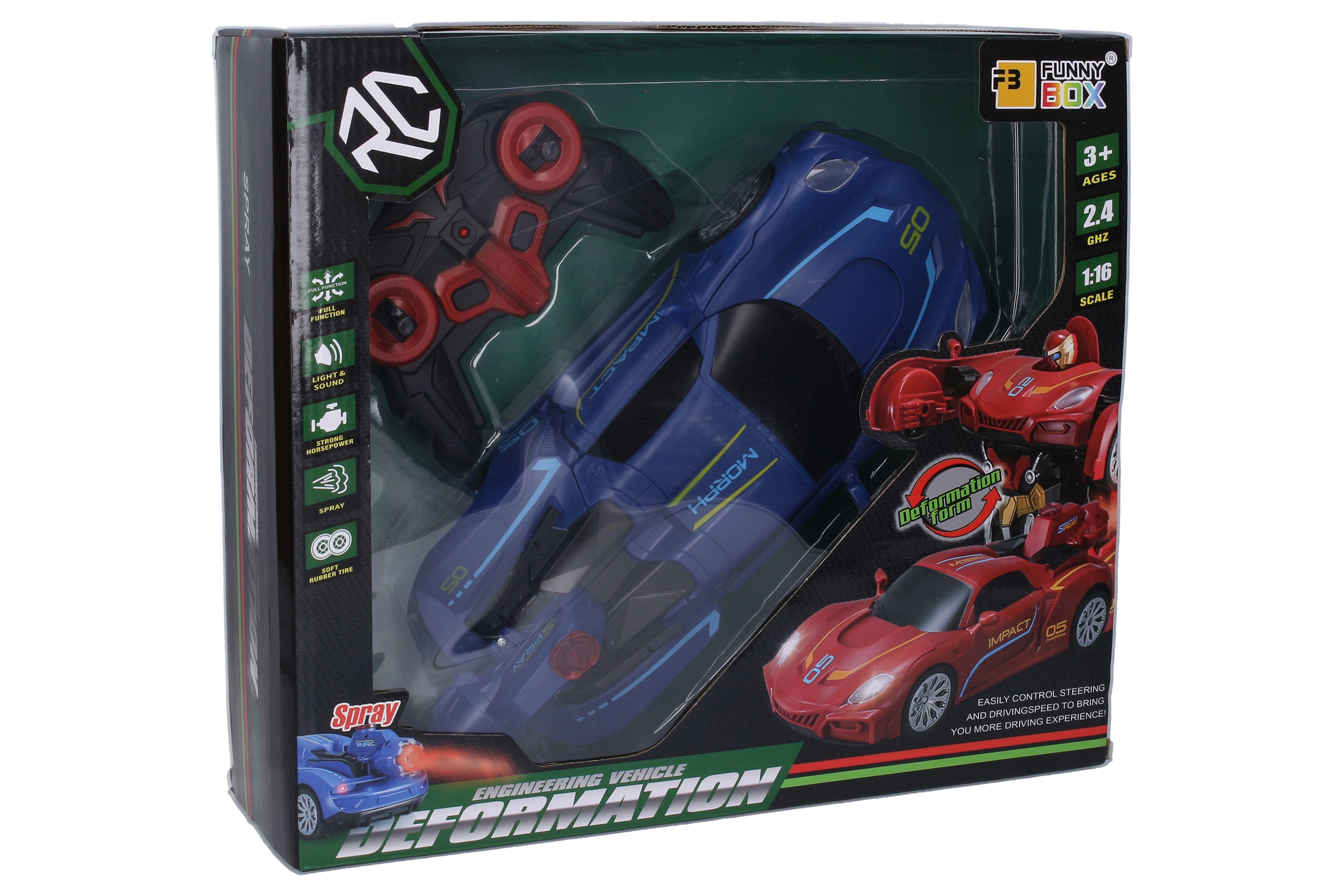 Ten dymiący RC autorobot łączy szybki samochód i dynamicznego robota w jednym. Jednym naciśnięciem przycisku aktywujesz transformację, a dzięki efektowi dymu oraz wyrazistym efektom świetlnym i dźwiękowym tworzy imponujące widowisko, które zachwyci dzieci i dorosłych.