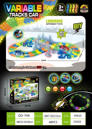 Wyścigowa świecąca autostrada VARIABLE, 165 elementów