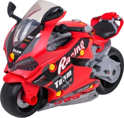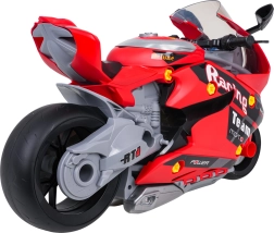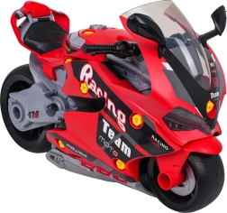 Motocykl wykonano z wysokiej jakości, wytrzymałych materiałów, ma wygodny uchwyt do przenoszenia, duże ruchome kółka oraz realistyczne detale nadwozia. Efekty obejmują przednie reflektory, tylne światła, dźwięki silnika oraz unikalny efekt dymu z wydechu po uzupełnieniu wody. Idealny prezent dla ciekawskich dzieci.