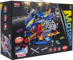 - 2w1: motocykl i warsztat – otwórz boki i rozpocznij „serwis”