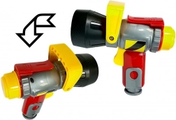 Maska ochronna z otworami wentylacyjnymi i okularami wspiera autentyczne wrażenia i rolę małego strażaka podczas dynamicznej zabawy.