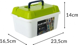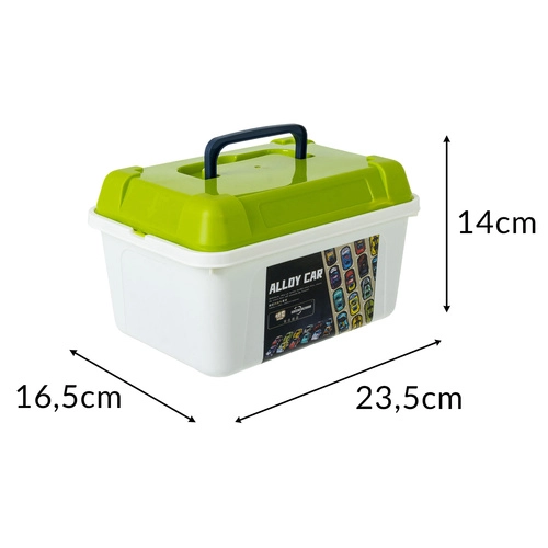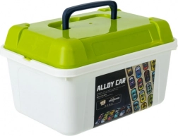 Solidny organizer z uchwytem trzyma kolekcję w jednym miejscu, ułatwia sprzątanie i pozwala bezpiecznie zabrać auta w podróż.