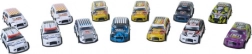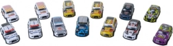 - 50 autek w jednym opakowaniu: różnorodne kolory, grafiki i numery wyścigowe.