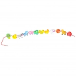 Nawlekanie drewnianych elementów na sznurek rozwija precyzję palców, cierpliwość oraz koncentrację. Idealne przygotowanie do pisania i rysowania w formie zabawy.