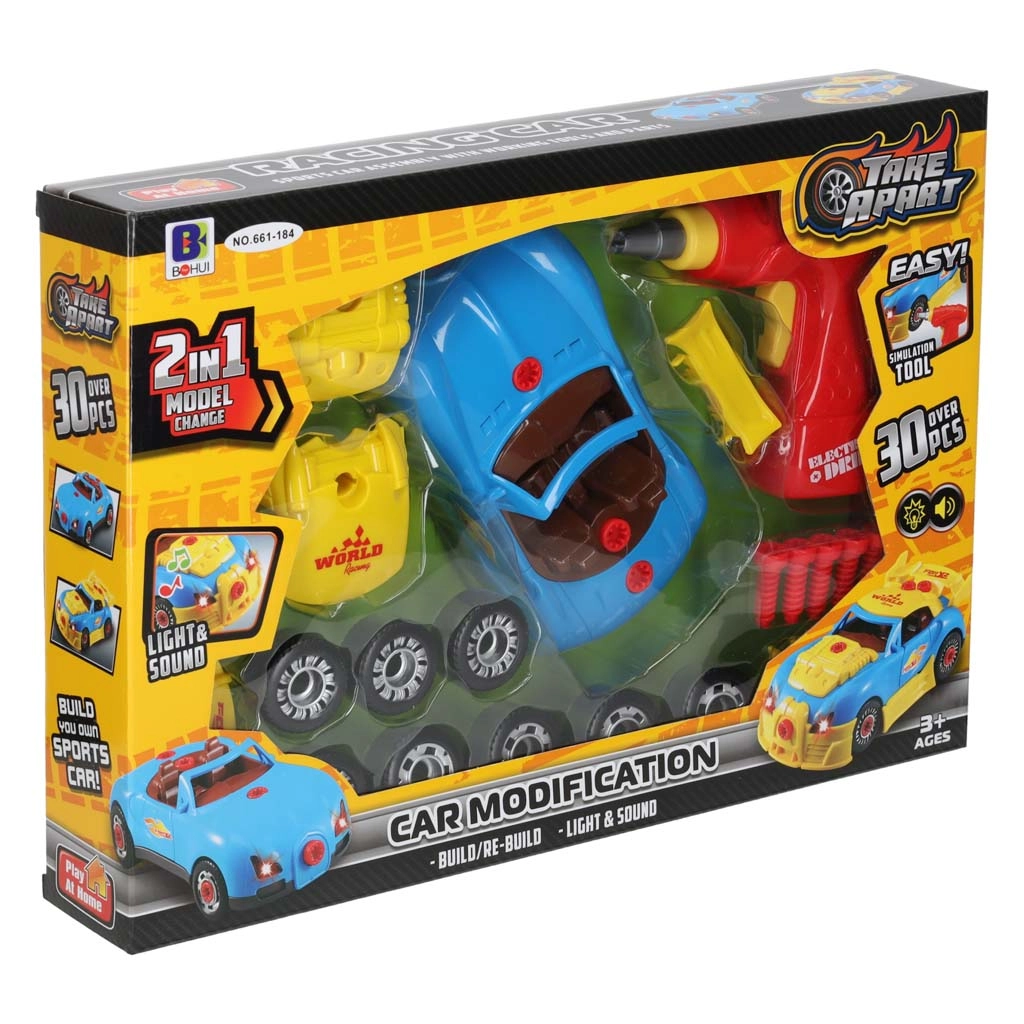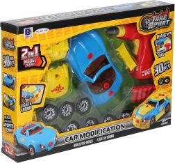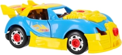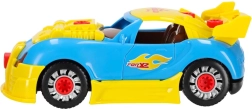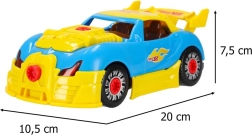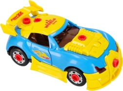 Zestaw kolorowego sportowego auta zapewnia dzieciom rozrywkę na długie godziny. Dzięki dołączonej wkrętarce na baterie małe rączki mogą rozkręcać i ponownie składać auto, wymieniać panele karoserii i koła oraz odkrywać, jak działają różne elementy. Po złożeniu samochód zachwyca świecącymi światłami i dźwiękami silnika, które potęgują realistyczne wrażenia z zabawy.