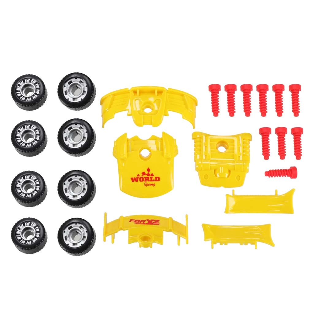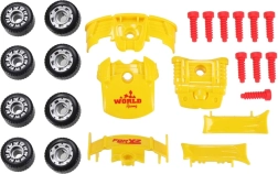 Z jednej karoserii łatwo stworzysz dwa różne warianty auta. Dzieci wypróbują tuning oraz wymianę kół i paneli według własnej fantazji.