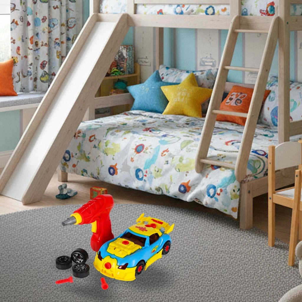 Zestaw konstrukcyjny samochodu wyścigowego z wkrętarką akumulatorową 2w1 ze światłami i dźwiękami