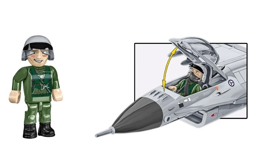 Idealny wybór dla fanów nowoczesnego lotnictwa wojskowego, modelarzy i kolekcjonerów. Zbuduj własnego F‑16, ustaw go na stojaku prezentacyjnym i poszerz kolekcję serii Armed Forces.