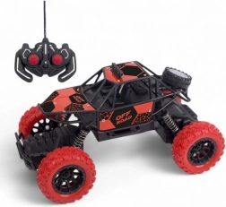 - RC buggy 1:18, pilot zdalnego sterowania, akumulator 3,7 V, ładowarka USB, 2× baterie AA