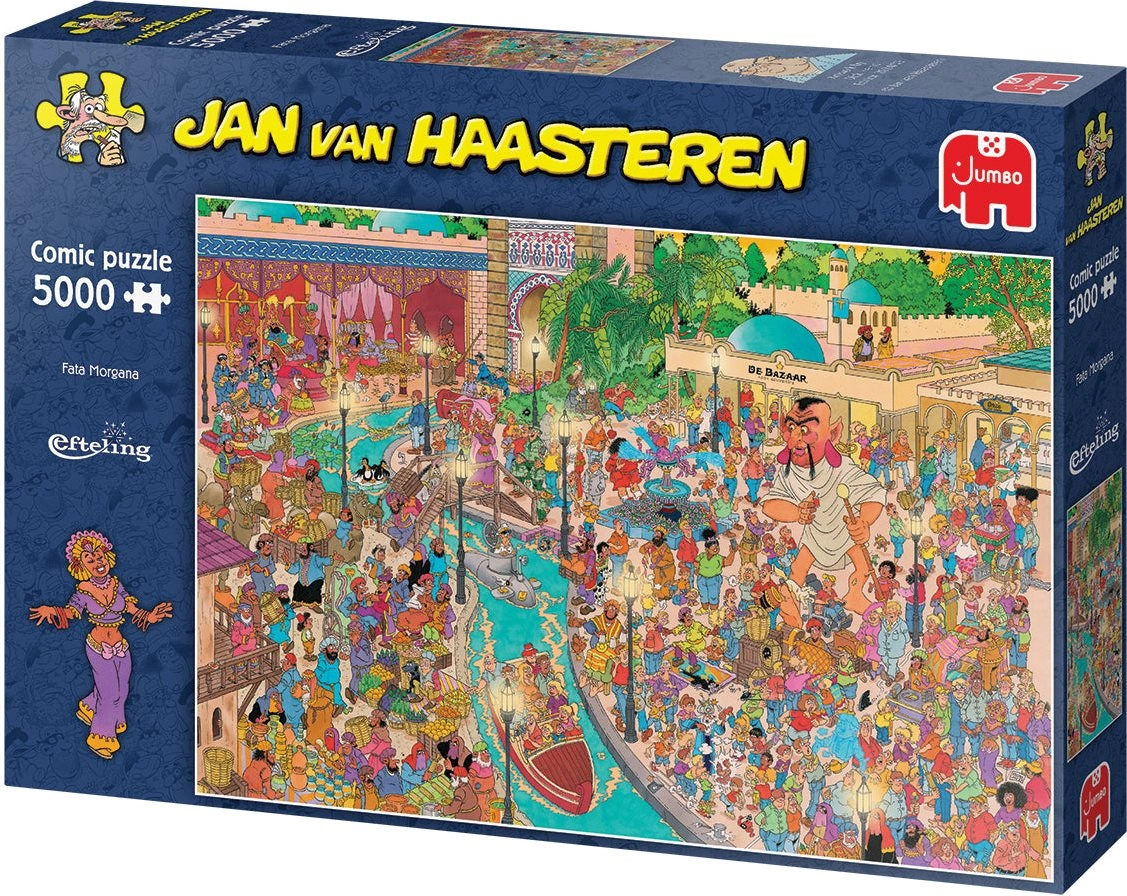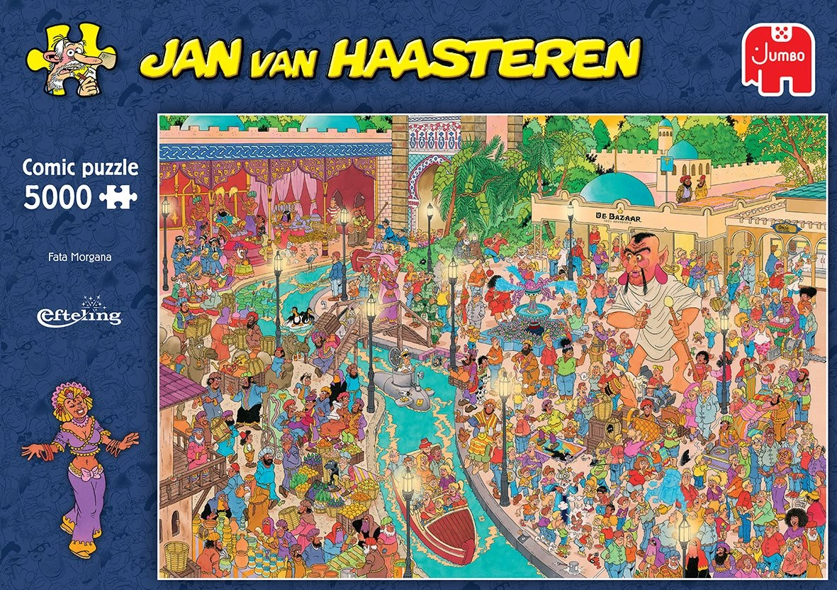 Odkryj świat pełen humoru i detali z legendarnymi puzzlami od JAN VAN HAASTEREN. Wielkoformatowe puzzle z 5000 elementów przedstawiają scenę Fata Morgana w Eftelingu, wypełnioną żartami, postaciami i ikonicznymi motywami, takimi jak płetwa rekina czy niepasujące ręce. Topowa jakość JUMBO zapewnia precyzyjne elementy i długie godziny zabawy.