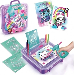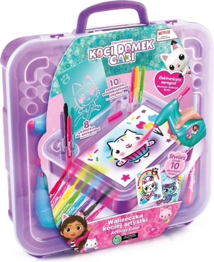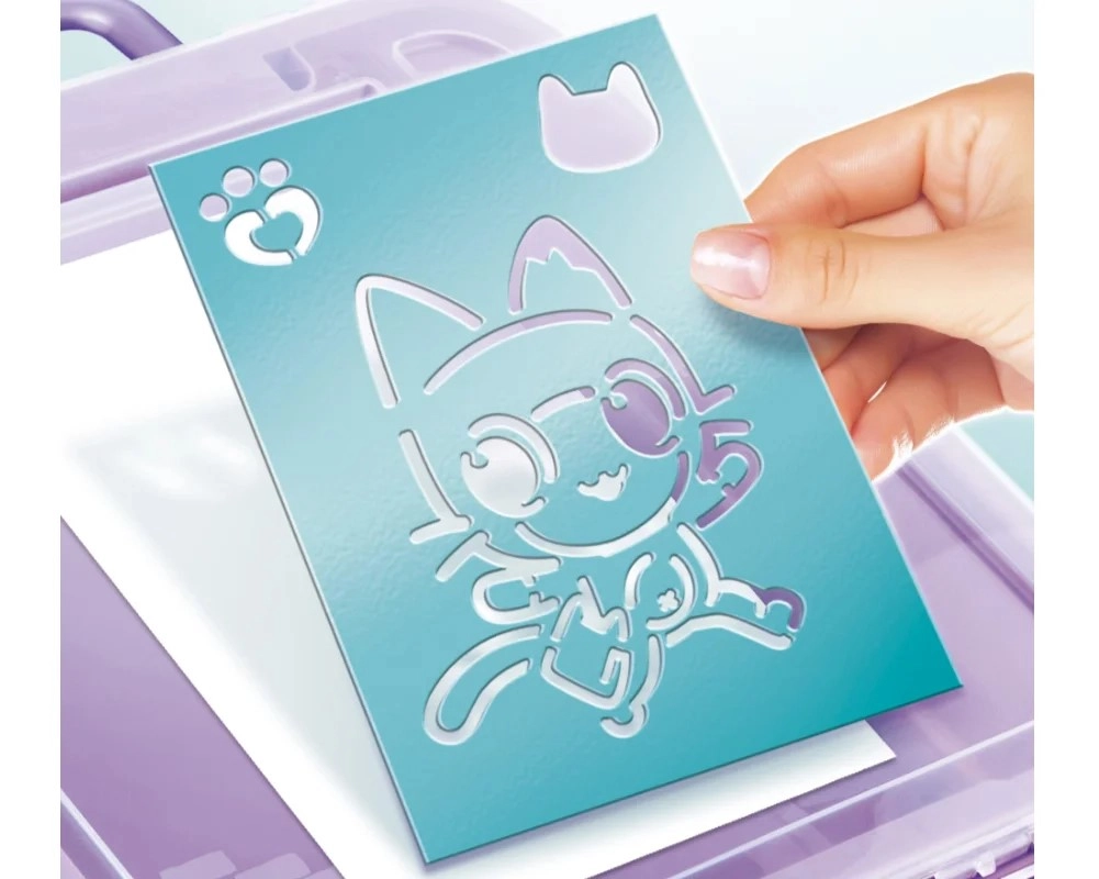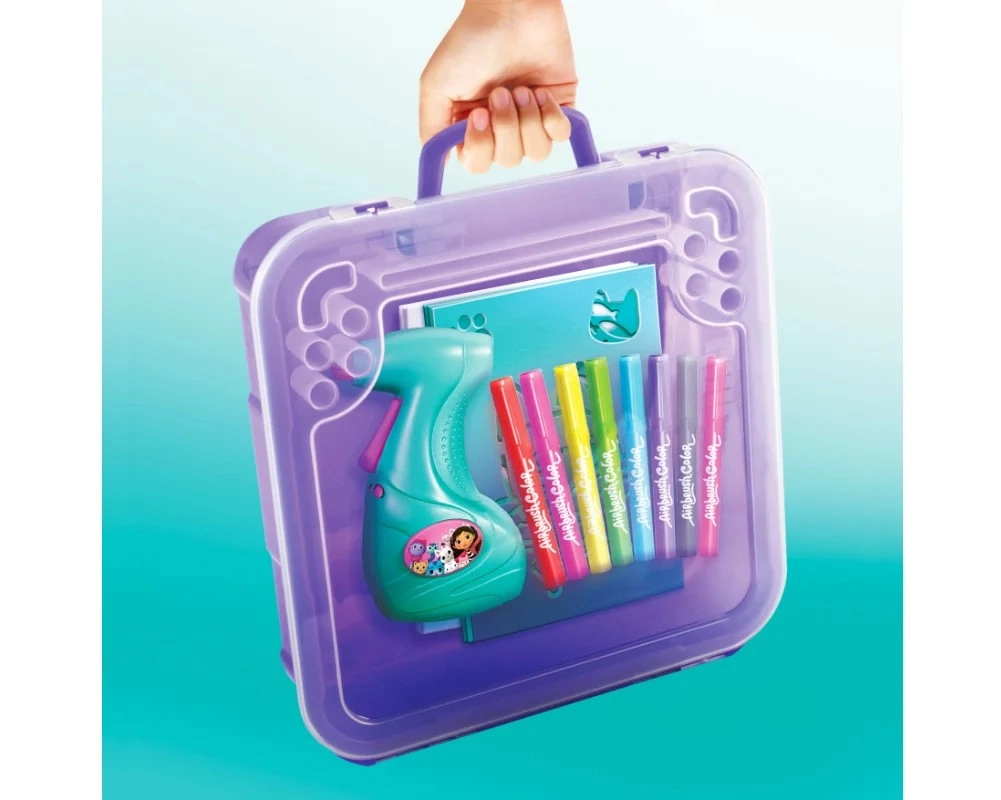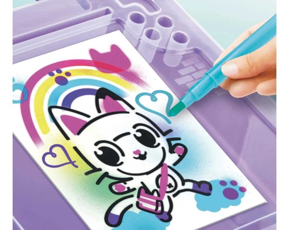 Ten przenośny zestaw kreatywny to świetny prezent dla małych artystów, którzy kochają kolory i wyobraźnię. Wystarczy włożyć flamaster do urządzenia, nacisnąć przycisk i zacząć malować – proste sterowanie jest odpowiednie także dla młodszych dzieci. Design inspirowany bajką Domek Gabi ucieszy wszystkich fanów uroczych kocich postaci.