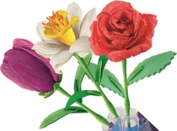 - Elementy do złożenia kwiatów (łodygi, płatki, kielichy), personalizowana tekturowa doniczka