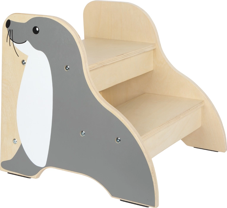 Stabilne schodki dla dzieci z uroczym motywem foki od marki small foot pomagają dzieciom bezpiecznie sięgać do wyżej położonych miejsc w łazience, kuchni i pokoju dziecięcym. Dzięki solidnej konstrukcji o udźwigu do 150 kg nadają się także dla dorosłych, a antypoślizgowe gumy na spodzie zapewniają pewność na gładkich powierzchniach. Naturalny design doskonale wpasuje się w każde wnętrze.