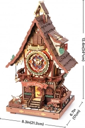 Odkryj urok tradycyjnego zegarmistrzostwa w nowoczesnym wydaniu: 3D drewniana układanka zegara z kukułką z precyzyjnym mechanizmem kwarcowym i delikatnym oświetleniem. Model zachwyca dopracowanymi detalami leśnej chatki z kołem wodnym, wahadłem i figlarnymi motywami. Po włączeniu trybu godzinowego, o każdej pełnej godzinie rozlega się dźwięk kukułki z melodyjnym brzmieniem. Składanie bez kleju rozwija motorykę małą i cierpliwość, a efektem jest wyjątkowa dekoracja oraz oryginalny prezent dla dzieci od 14 lat i dorosłych.