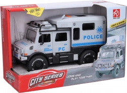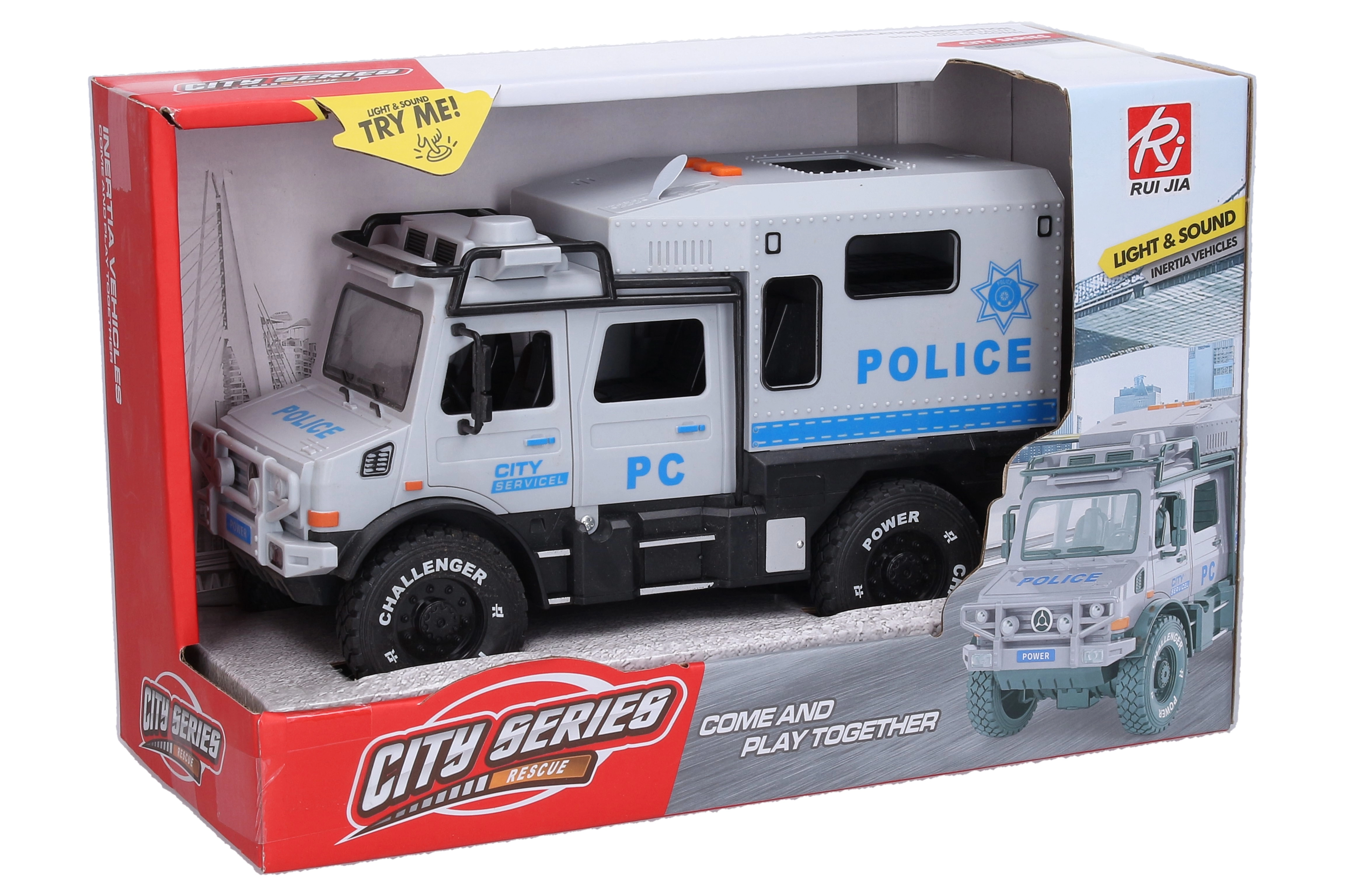 Wyrusz na akcję z policyjnym opancerzonym autem, które zachwyca dopracowaniem detali i bogatymi funkcjami. Dzięki napędowi ciernemu pojazd rusza po popchnięciu, a efekty zapewniają dzieciom jeszcze bardziej realistyczną zabawę.