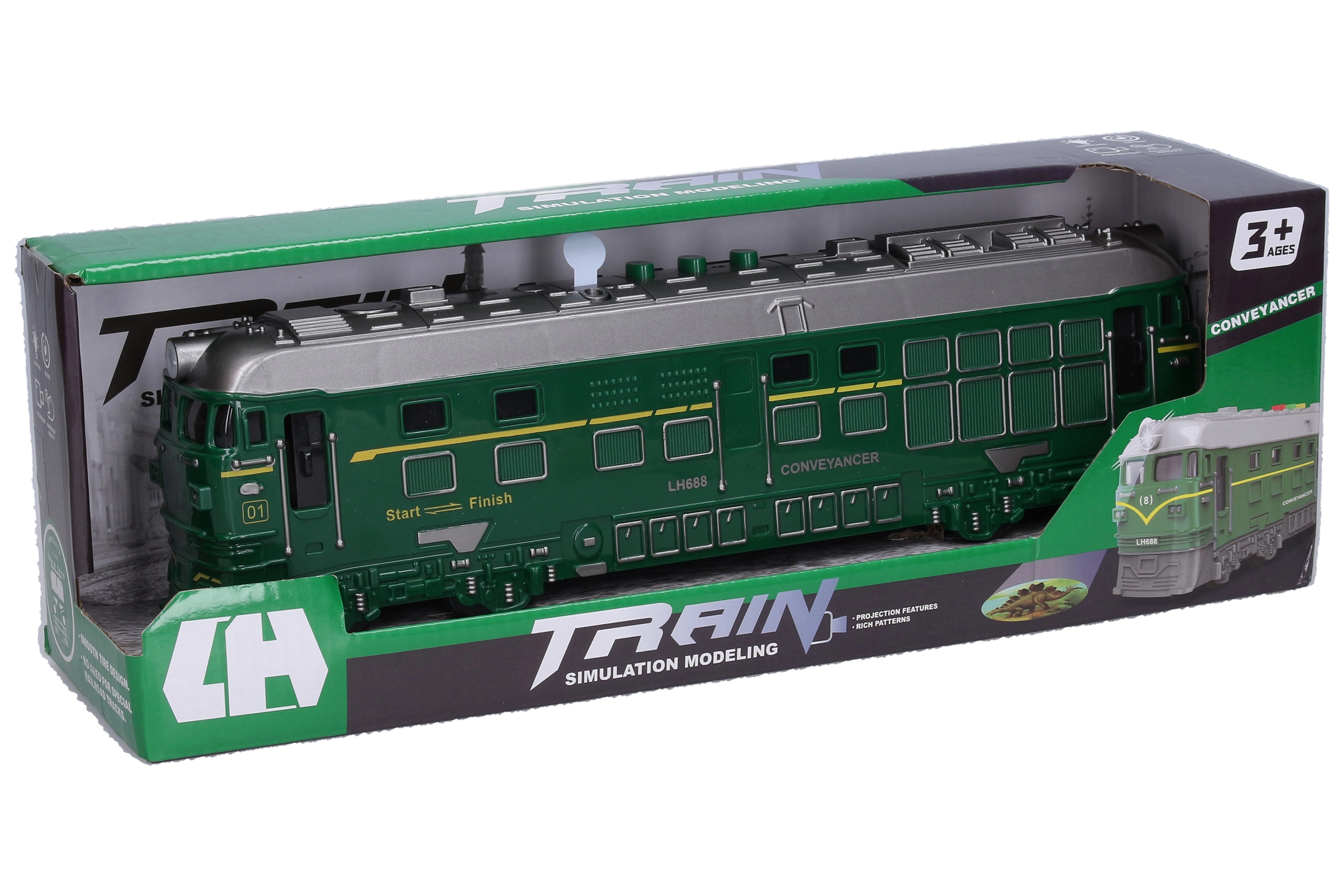 Ten zielony pociąg na napęd bezwładnościowy to świetny wybór do zabawy w domu i w podróży. Dzięki efektom świetlnym i dźwiękowym oraz projekcji zapewnia realistyczne wrażenia z jazdy pociągiem, które zaciekawią i pobudzą dziecięcą wyobraźnię.