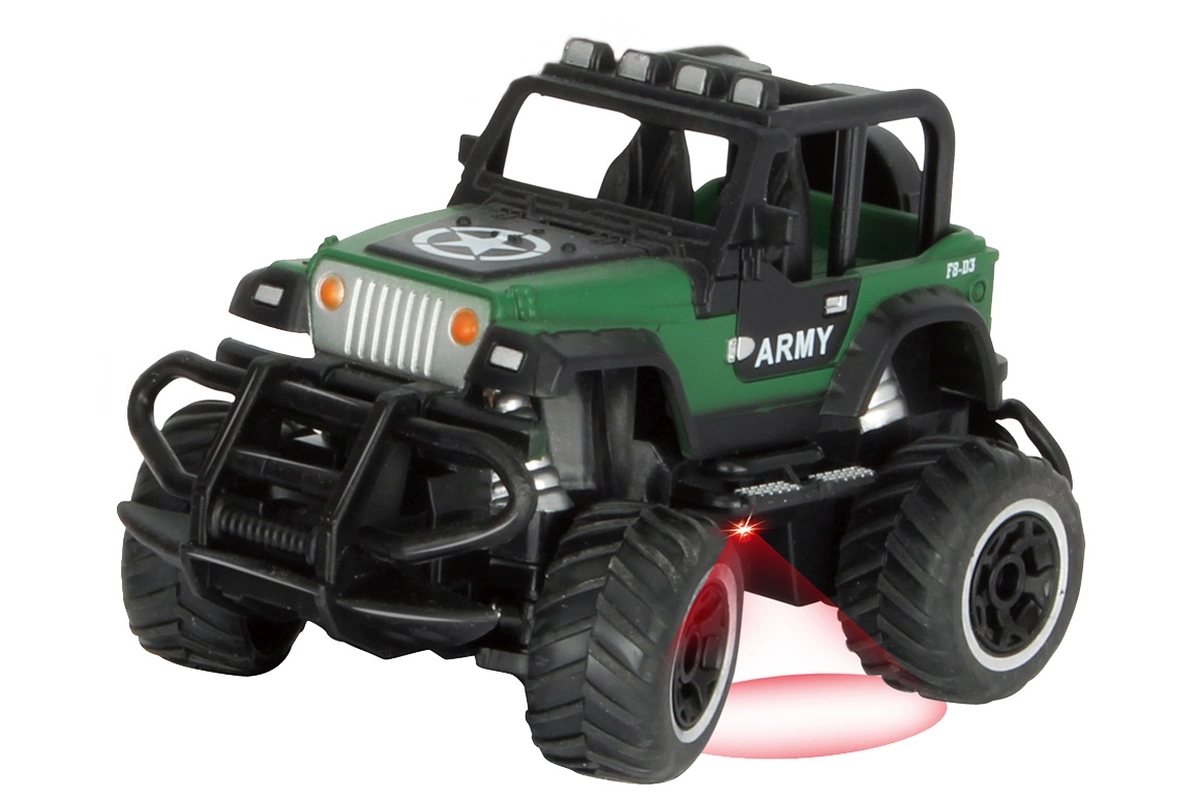 Model RC jest zasilany czterema bateriami AA, więc szybko przygotujesz go do jazdy. Dzięki atrakcyjnemu wojskowemu designowi i stabilnemu podwoziu to idealny wybór dla początkujących kierowców i małych poszukiwaczy przygód.