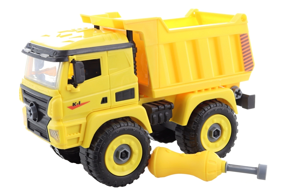 Ta wywrotka do skręcania zapewnia dzieciom świetną zabawę, a jednocześnie wspiera praktyczne umiejętności. Za pomocą dołączonego plastikowego śrubokręta dzieci mogą rozkręcać i ponownie składać poszczególne części, trenować koordynację oko–ręka i poznawać podstawowe zasady konstrukcji. Zabawka jest wykonana z wytrzymałego plastiku i dzięki zaokrąglonym krawędziom nadaje się dla małych dzieci.