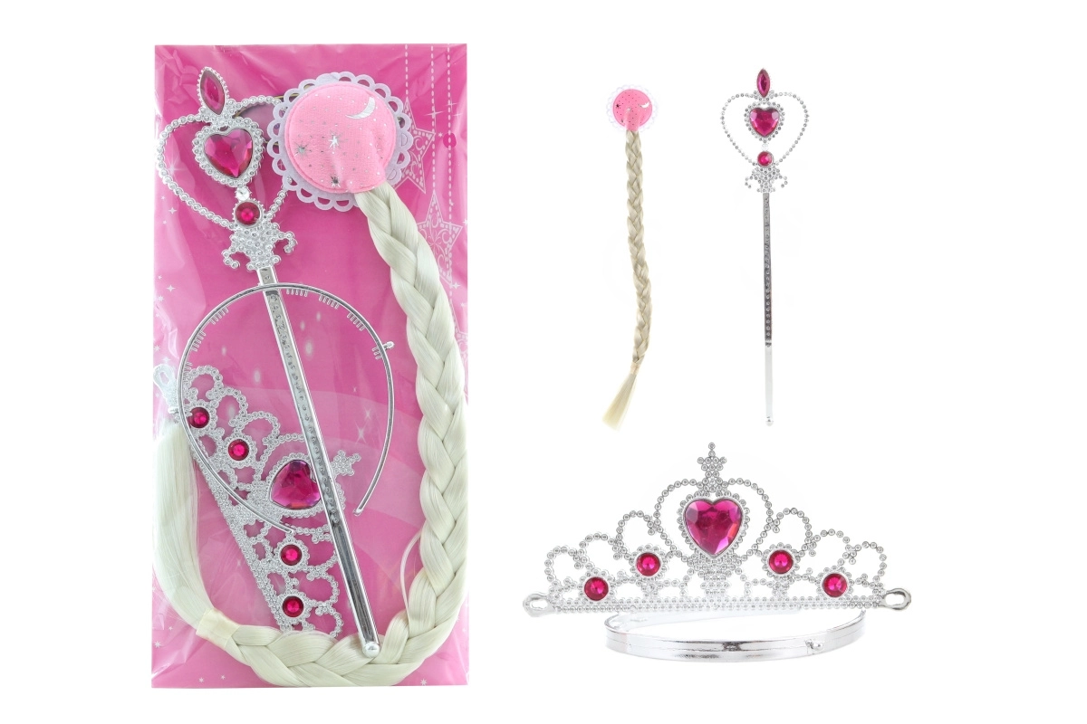 Zamień każde dziecięce królestwo w magiczną krainę. Ten zestaw piękności z blond warkoczem jest doskonały do zabaw w udawanie, karnawałów i codziennych zabaw. Dzieci pokochają błyszczącą koronę, eleganckie berło oraz wyrazisty długi warkocz, który dopełni każdy księżniczkowy strój.