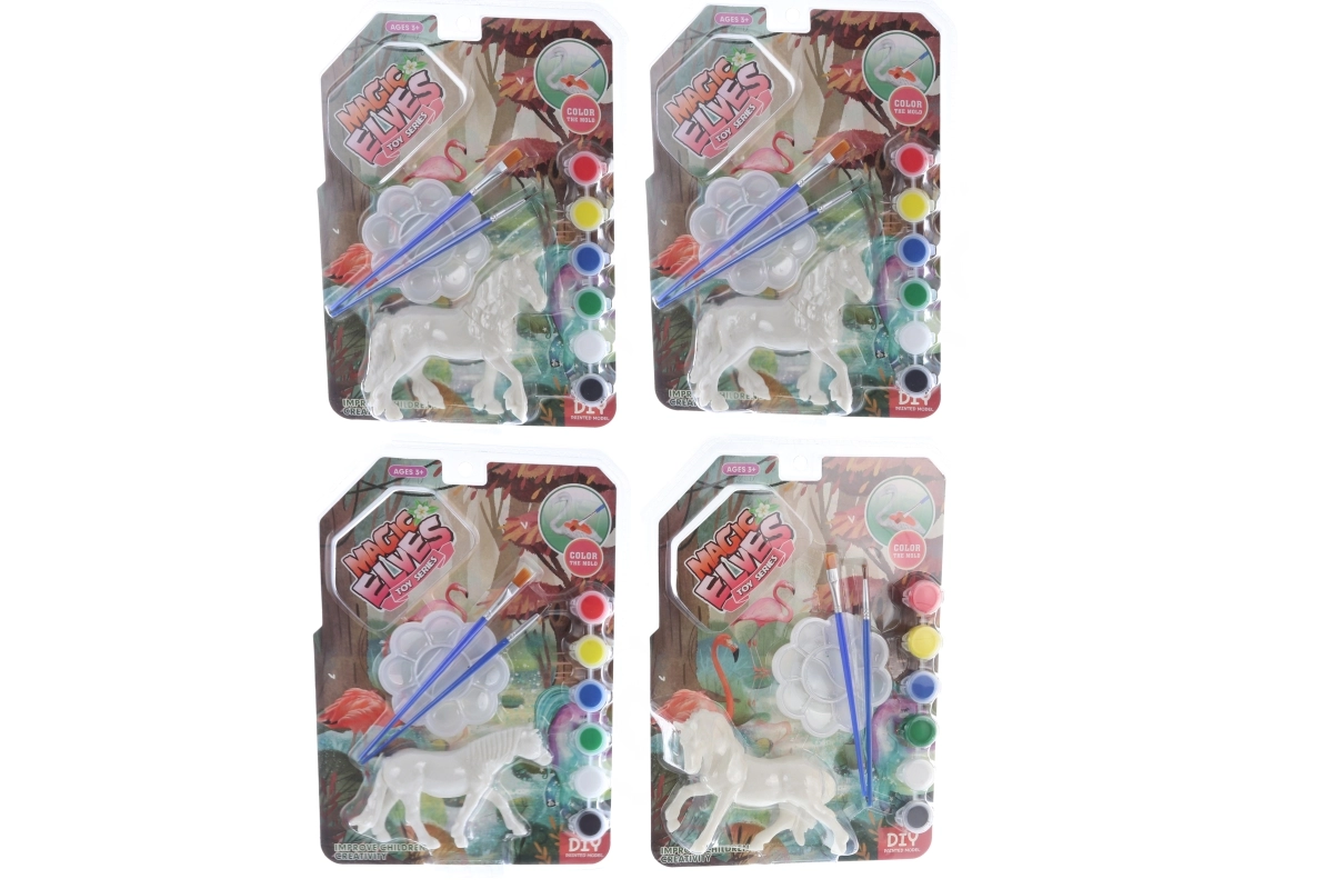 - Plastikowy model 3D jednorożca, 6 farb, 2 pędzelki, paleta