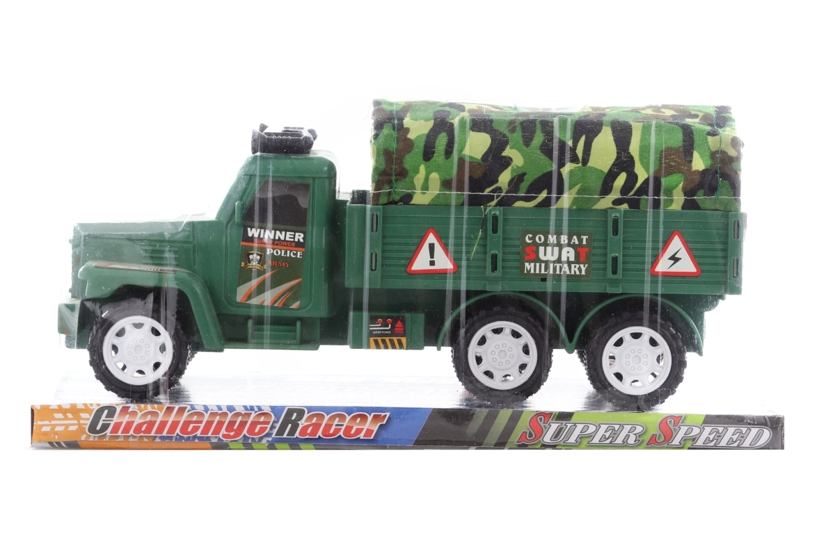 Wojskowy samochód z plandeką to idealna zabawka dla dzieci, które kochają akcję i przygodę. Dzięki solidnej plastikowej karoserii i materiałowej plandece wygląda autentycznie i wytrzymuje nawet intensywną zabawę. Kompaktowy rozmiar doskonale sprawdzi się w dziecięcym pokoju i w podróży.