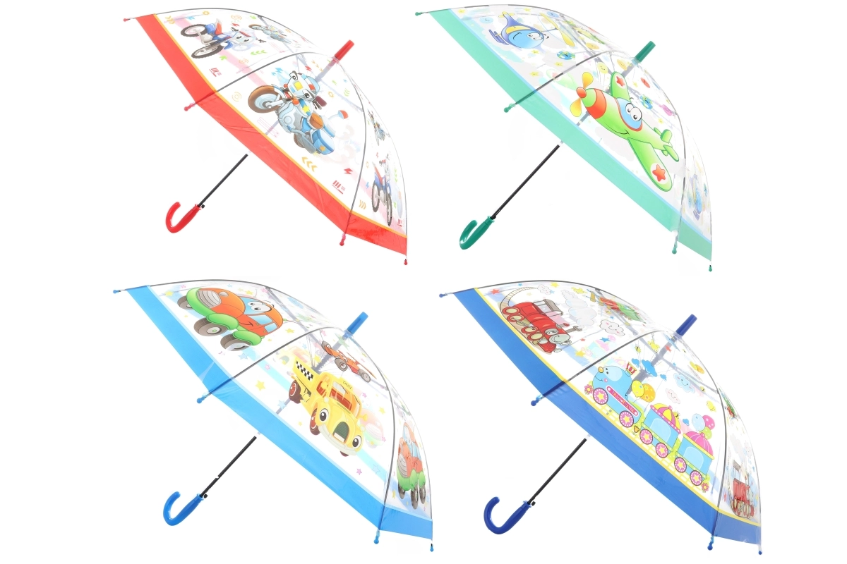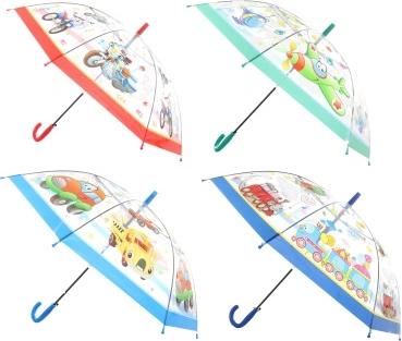 Przezroczysty parasol automatyczny z motywem środków transportu