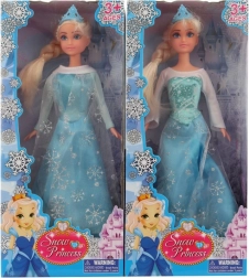 Elegancka stawowa lalka w zimowej sukience zachwyci każdą małą księżniczkę. Ma ruchome ręce, nogi i głowę, jest ozdobiona koroną i przychodzi zapakowana w pudełko prezentowe. Idealny prezent dla dzieci od 3 lat.
