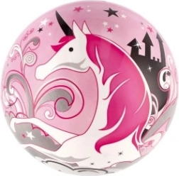 Piłka przyciąga każde dziecko dzięki swojemu kolorowemu motywowi z jednorożcem i gwiazdami, co pobudza wyobraźnię.