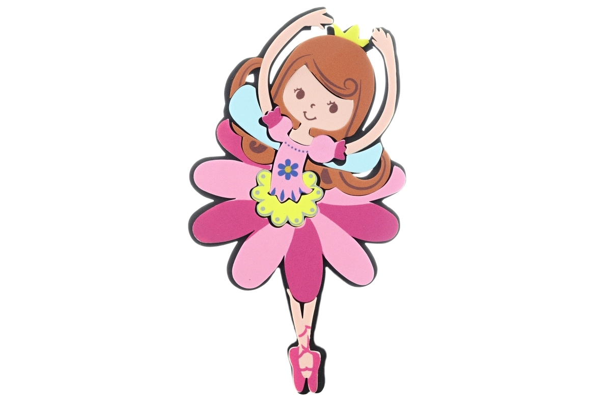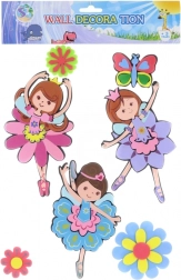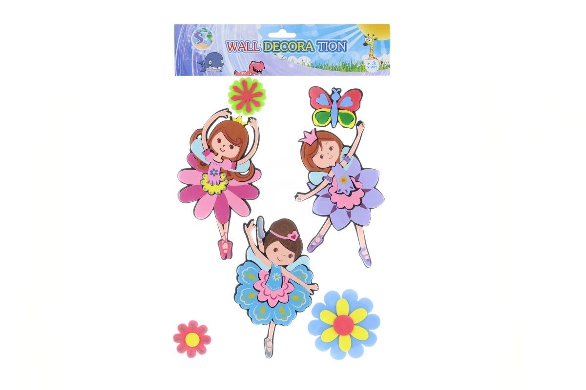 Ten czarujący zestaw dekoracji ściennych wnosi do wnętrza subtelność i kolory. Trzy eleganckie wróżki, barwne kwiaty i figlarny motylek tworzą harmonijną kompozycję, która doskonale sprawdzi się nad łóżeczkiem, biurkiem lub w kąciku zabaw. Elementy są wykonane z lekkiej pianki o przyjemnej w dotyku powierzchni, a dzięki samoprzylepnej tylnej warstwie poradzi sobie z nimi nawet początkujący dekorator.
