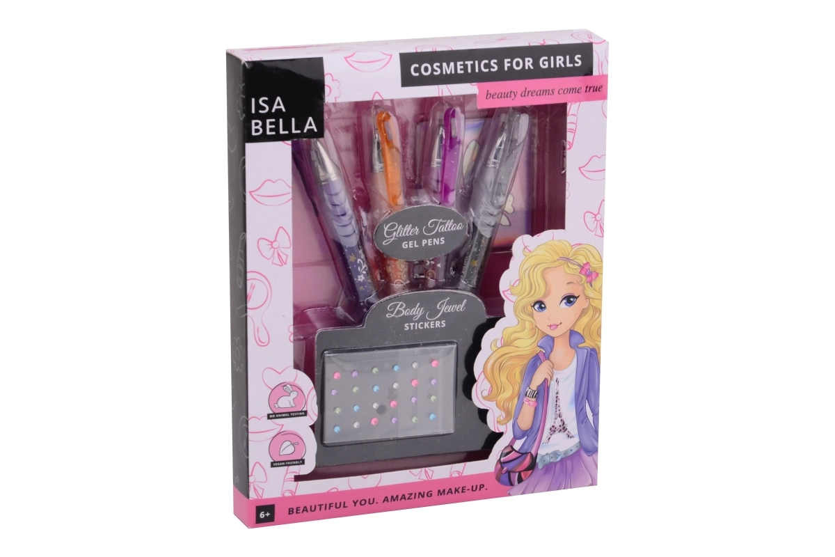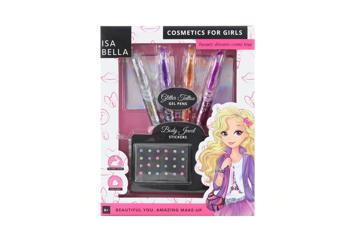 Odkryj magię blasku z tym wesołym zestawem do tatuaży dla dziewczynek. Dzięki czterem brokatowym pisakom i przydatnym akcesoriom Twoje dziecko stworzy oryginalne, tymczasowe tatuaże na każdą okazję – od domowej zabawy po dziecięce przyjęcia.