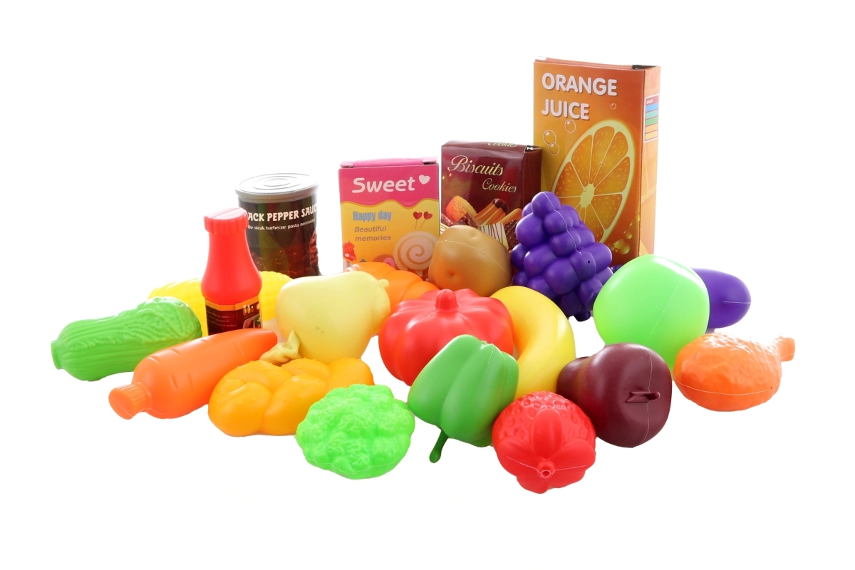 Nasycone kolory i zróżnicowane kształty wspierają rozwój motoryki małej, rozpoznawanie produktów oraz naukę poprzez zabawę.