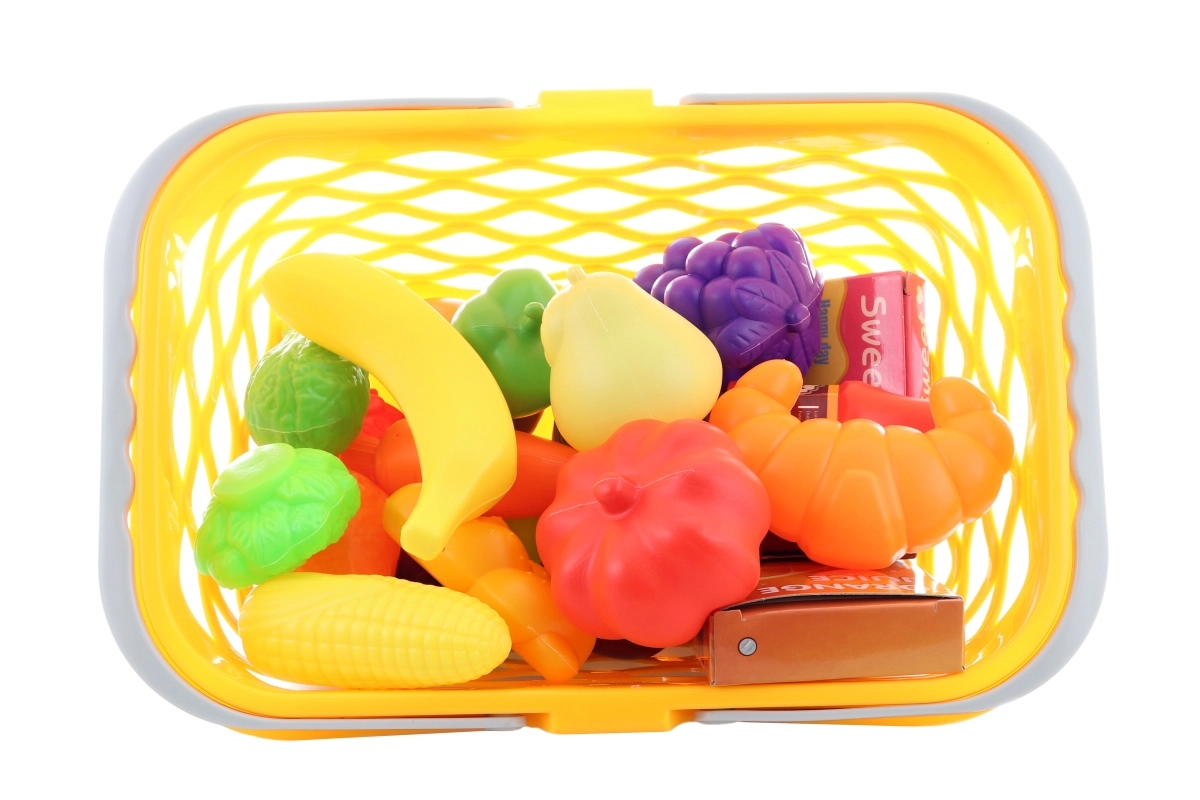 Koszyk pełen owoców i warzyw pobudza wyobraźnię, rozwija komunikację i uczy dzieci podstaw kupowania oraz gotowania.