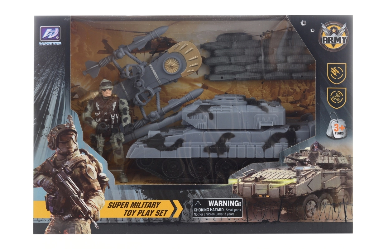 Odkryj pełną akcji zabawę z tym wojskowym zestawem z czołgiem dla małych poszukiwaczy przygód. W zestawie znajduje się figurka żołnierza, plastikowy czołg oraz mniejsze akcesoria do kreatywnej zabawy. Odpowiedni dla dzieci od 3 lat, zapakowany w praktyczne pudełko.