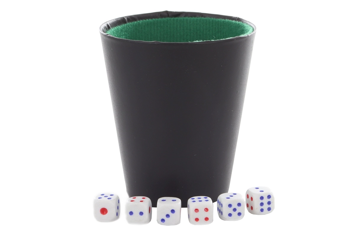 Ciesz się wygodnym i kulturalnym rzucaniem kośćmi dzięki plastikowemu kubkowi z filcowym wykończeniem wewnątrz, które tłumi dźwięk i pomaga utrzymać kości pod kontrolą. Zestaw zawiera sześć standardowych kości do gry o rozmiarze około 1,2 cm – idealnych do klasycznych gier planszowych.