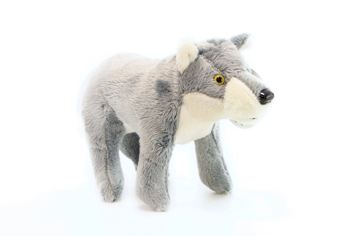 Ten pluszowy wilk zachwyca dopracowanymi detalami i przyjemnym w dotyku materiałem, który zachęca do przytulania. Dzięki stojącej pozycji wygląda realistycznie i sprawdzi się nie tylko w pokoju dziecięcym, ale także jako dekoracja dla miłośników natury.