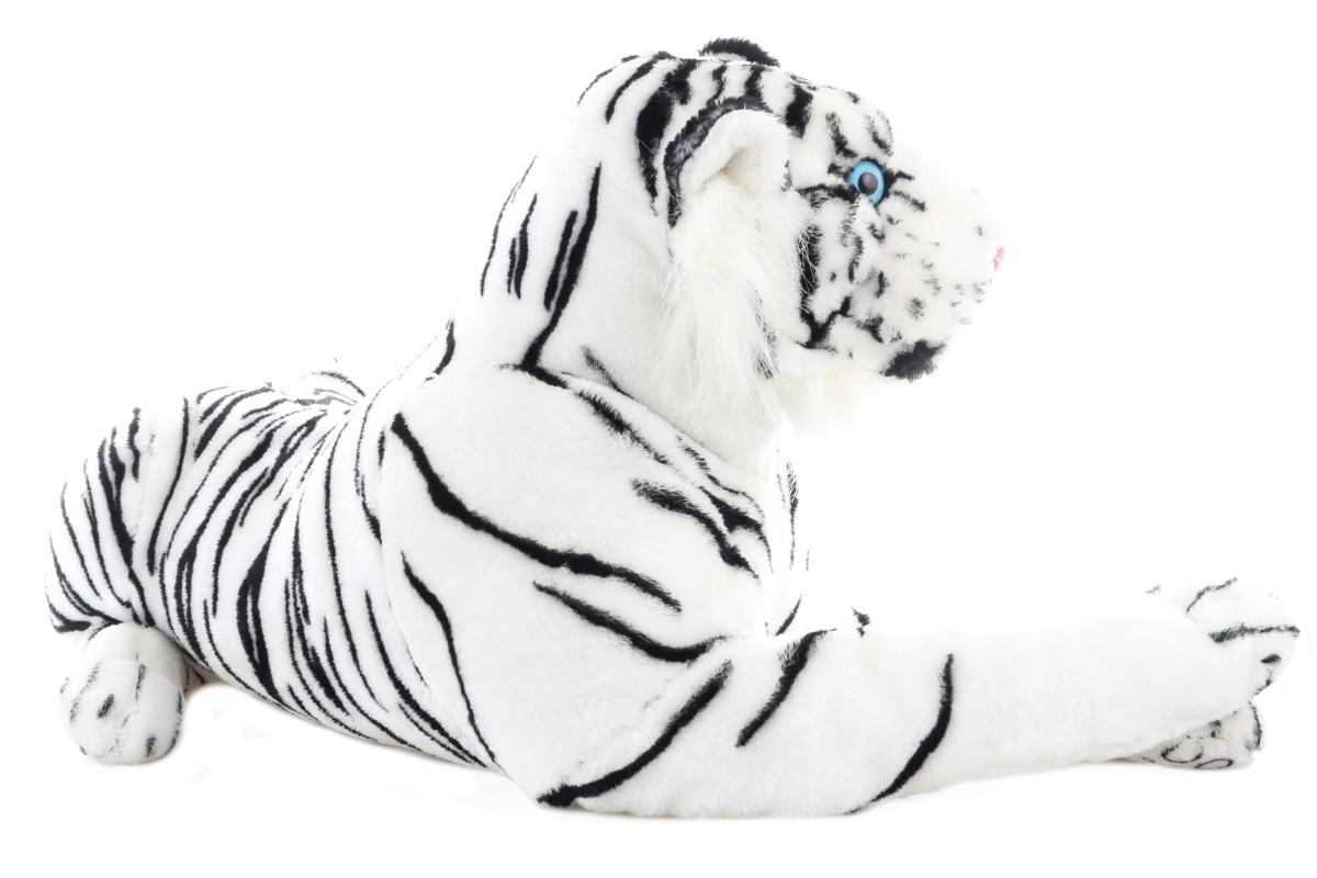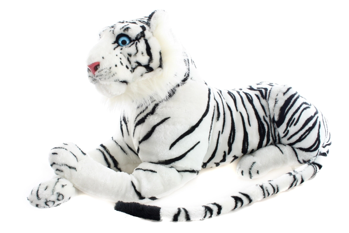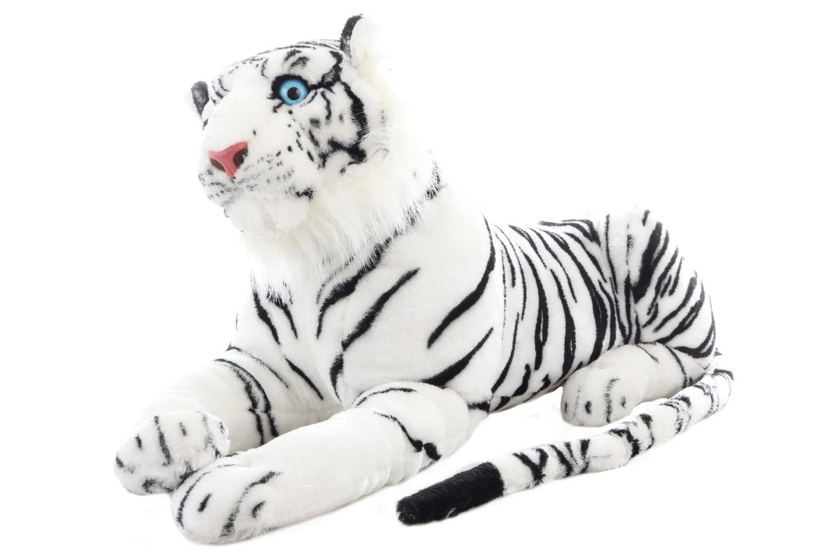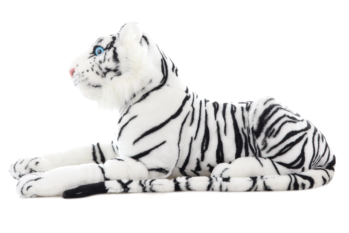 Uroczy i realistycznie wykonany pluszowy biały tygr o długości 70 cm ucieszy małych i dużych miłośników zwierząt. Extra miękki materiał, wyraziste niebieskie oczy i detaliczne pręgi czynią z niego idealną zabawkę do przytulania, dekoracji i kreatywnej zabawy. Odpowiedni już od 0+.