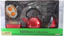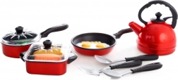 - Kompletne wyposażenie: czajnik, patelnia, rondel, garnek, łopatki i imitacje jedzenia