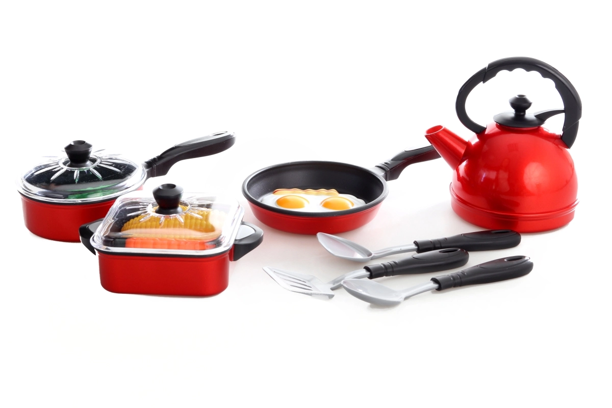 - Czajnik, patelnia, rondel, garnek, łopatki, imitacje jedzenia