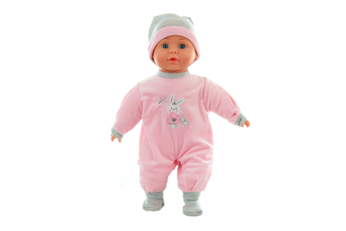 Uroczy dzidziuś z miękkim ciałkiem ucieszy każdą małą mamę. Ubrany jest w kolorową piżamkę na rzep i po naciśnięciu brzuszka wydaje realistyczne dźwięki. W zestawie znajdują się 3 baterie AG13, więc dzieci mogą bawić się od razu po rozpakowaniu. Idealny prezent dla dzieci od 3 lat.