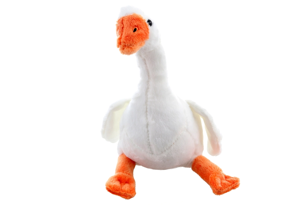Ta pluszowa gęś zachwyca puszystym wyglądem i bezpiecznym wykonaniem bez małych, odłączanych elementów. Dzięki miękkiemu korpusowi łatwo leży w dłoni nawet najmłodszym dzieciom i staje się miłym towarzyszem przy zasypianiu oraz w drodze.