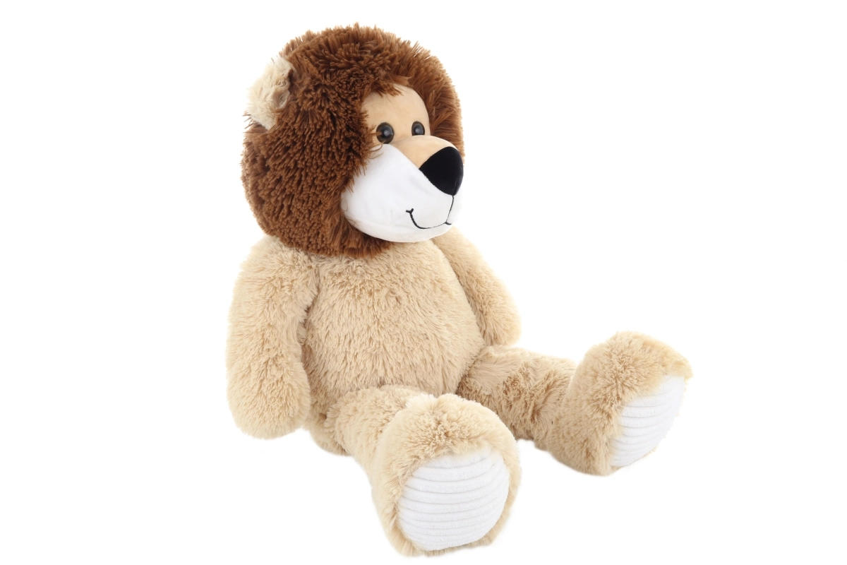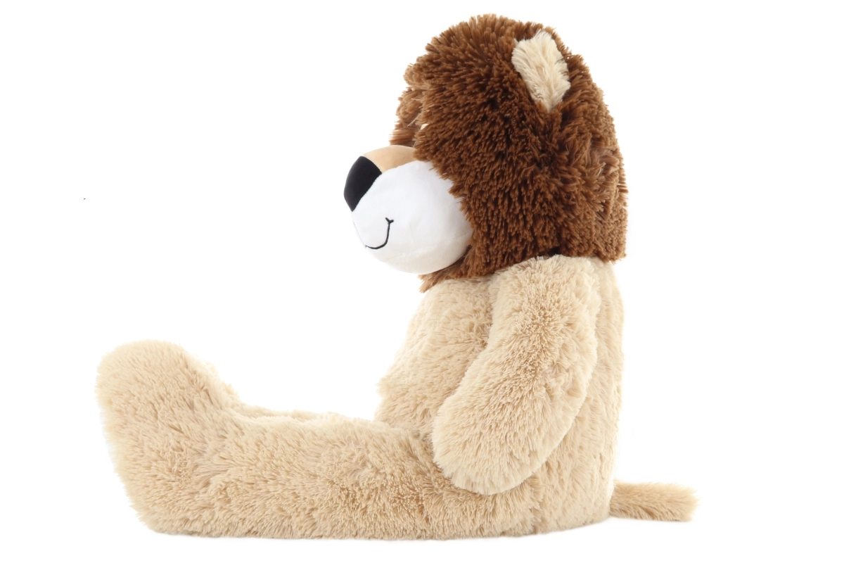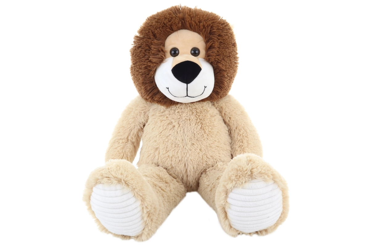 Dzięki dużym łapom lew dobrze siedzi na półce czy łóżku i sprawdza się jako urocza dekoracja oraz świetny towarzysz zabawy.