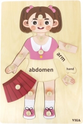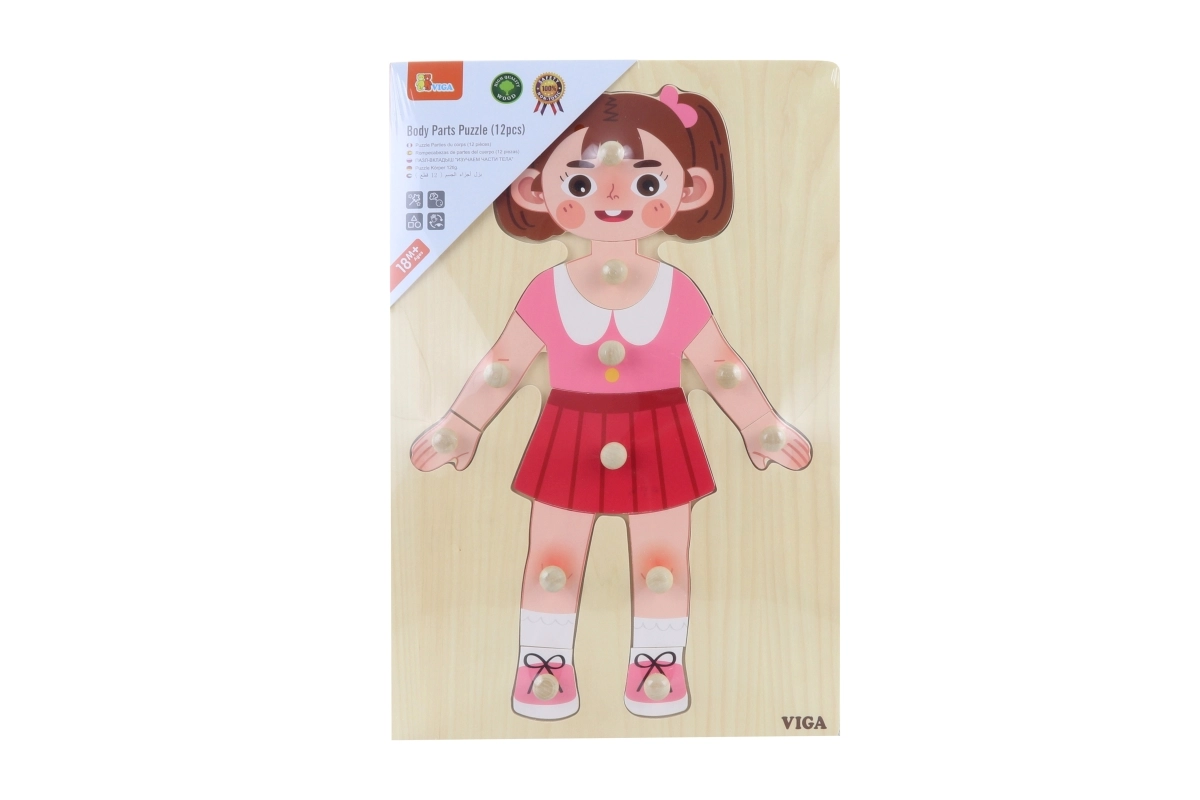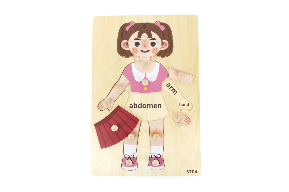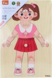 Ta drewniana układanka – dziewczynka to doskonała pomoc do pierwszego poznawania ludzkiego ciała oraz rozwoju koordynacji oko–ręka. Dzięki solidnemu wykonaniu i przyjemnemu wzornictwu dzieci szybko ją pokochają i w zabawie trenują motorykę małą, cierpliwość oraz koncentrację.