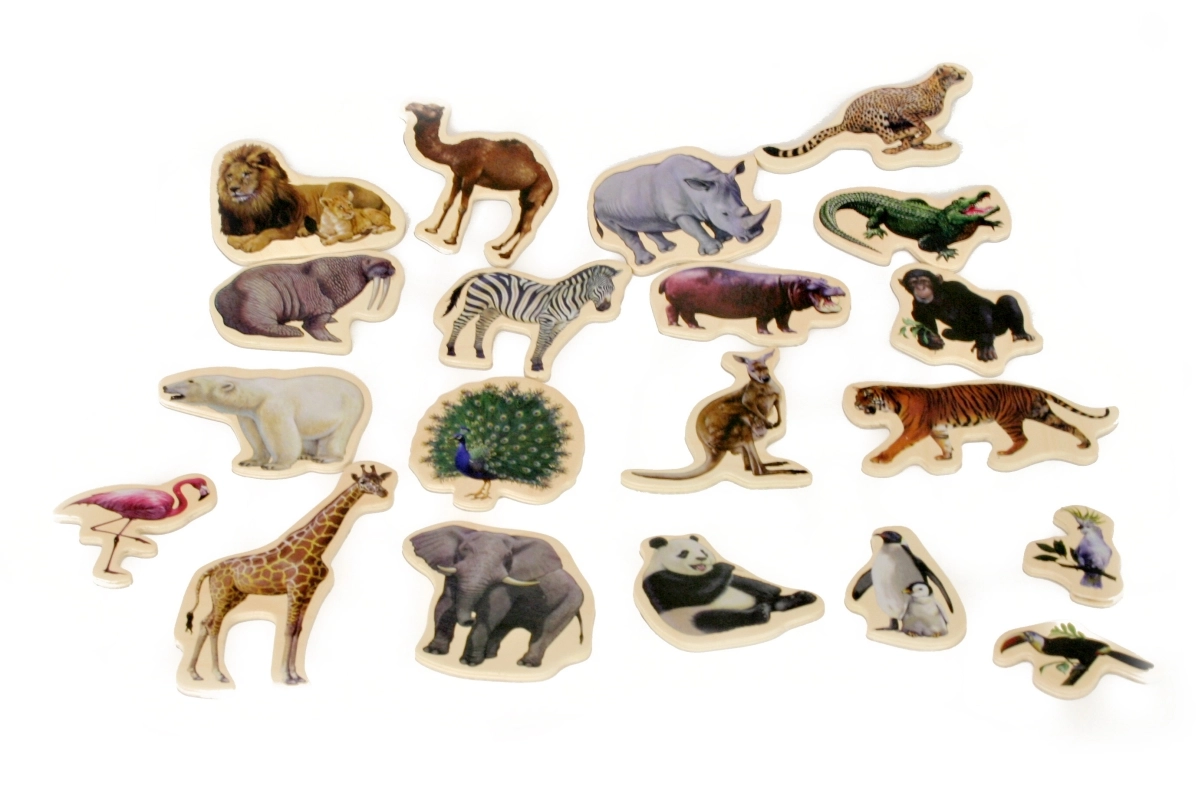 Stabilne i trwałe drewniane figurki z realistycznym nadrukiem wytrzymają codzienne użytkowanie i są przyjemne w dziecięcej dłoni.