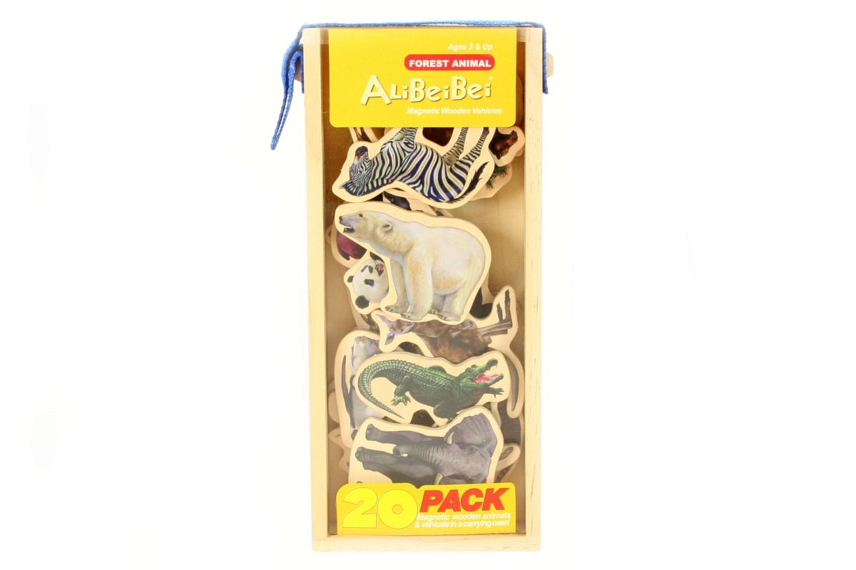 Komplet znajduje się w solidnym, drewnianym pudełku z przezroczystą pokrywką i praktycznym uchwytem, co ułatwia przenoszenie. Idealny do zabawy w domu, w przedszkolu i w podróży. Dzieci ćwiczą rozpoznawanie zwierząt, słownictwo, klasyfikację oraz koordynację ręka–oko.