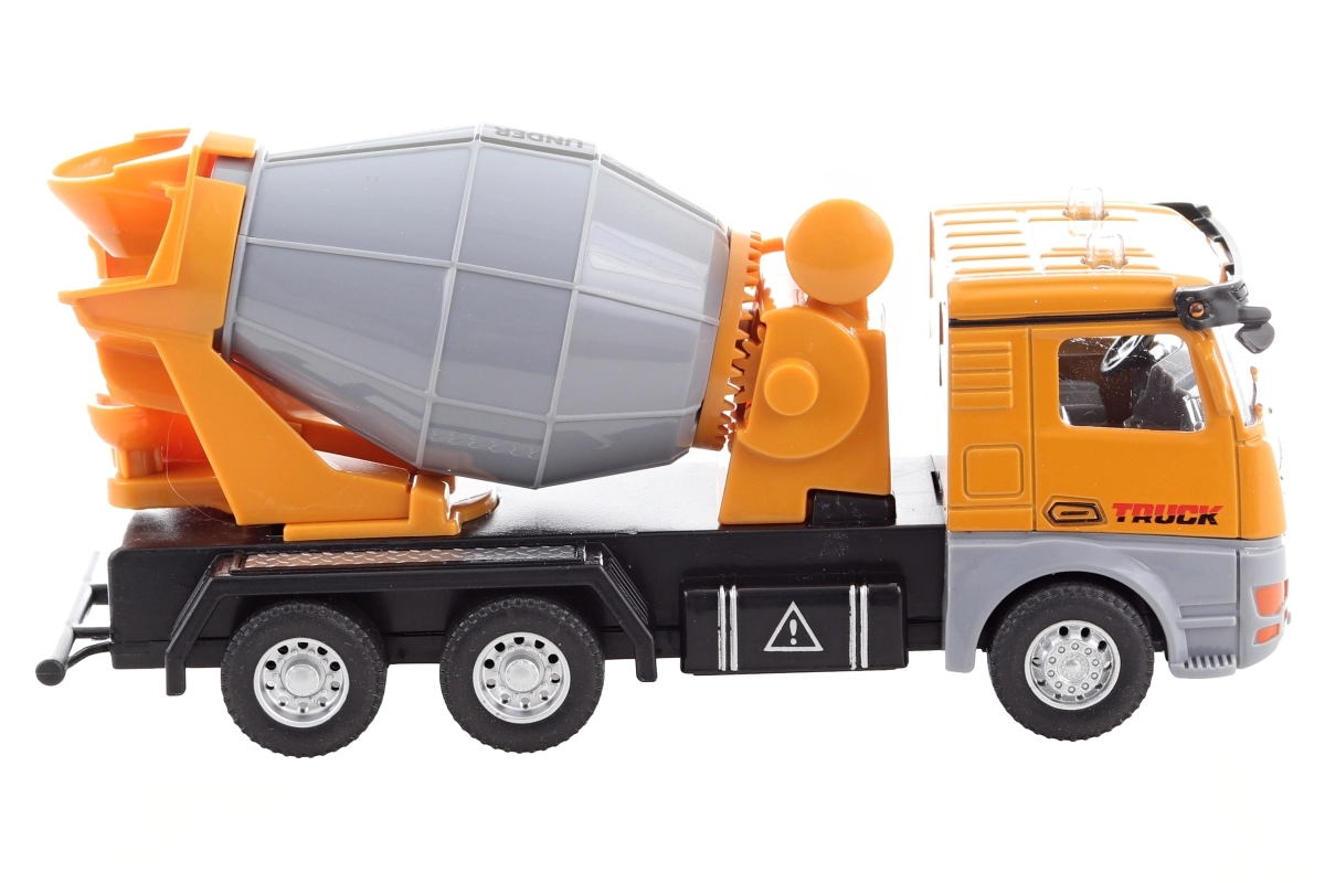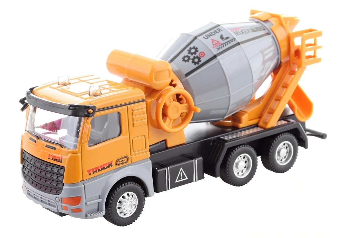 Dopracowana zabawka dla małych budowniczych: metalowa betoniarka na napęd bezwładnościowy z obrotowym bębnem i kołami na wolnym biegu. Łączy wytrzymały metal i plastik, oferuje realistyczne detale, funkcyjny obrotowy bęben oraz łatwą obsługę dzięki napędowi bezwładnościowemu. Idealna do kreatywnych zabaw budowlanych w domu i na placu zabaw.