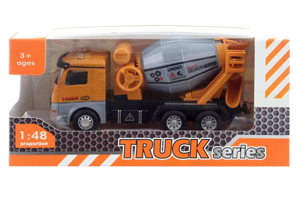 Ta betoniarka w skali 1:48 ucieszy dzieci od 3 lat realistycznym wykonaniem i wytrzymałą konstrukcją. Metalowa kabina z plastikowym bębnem i podwoziem zapewnia długą żywotność, a napęd bezwładnościowy umożliwia płynną jazdę bez baterii. Obrotowy bęben wiernie symuluje pracę prawdziwej maszyny i wspiera wyobraźnię podczas zabawy.
